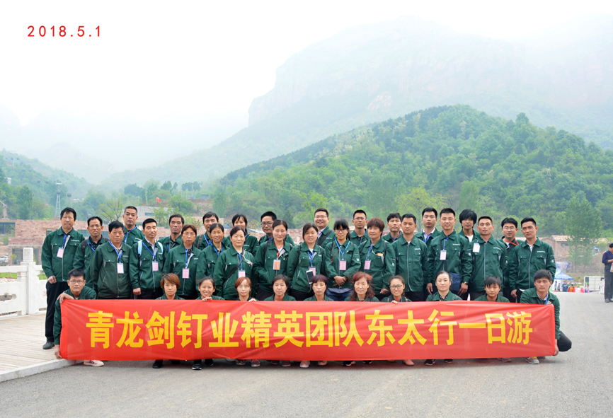 青龍劍釘業為了踐行公司“以人為本、視員工為家人”的管理理念,不斷提升團隊凝聚力,發揚“家”的企業文化,5月1日,公司組織精英團隊前往東太行景區一日游集體活動。
