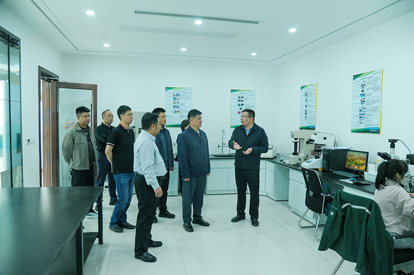在調研過程中,王建江主席深入生產車間,詳細了解企業的生產流程、設備運行情況,對企業近年來在設備智能化升級、技術創新等方面取得的成果表示肯定。青龍劍釘業自去年起大力推進智能化改造,引進 30 余套高科技智能設備,包括真空球化爐、新型鉆尾機并配套電腦檢測設備、連續式真空滲碳網帶爐等,實現生產自動化與智能化控制,提升了產品質量與生產效率,產品次品率降低,性能更加穩定,硬度更高。