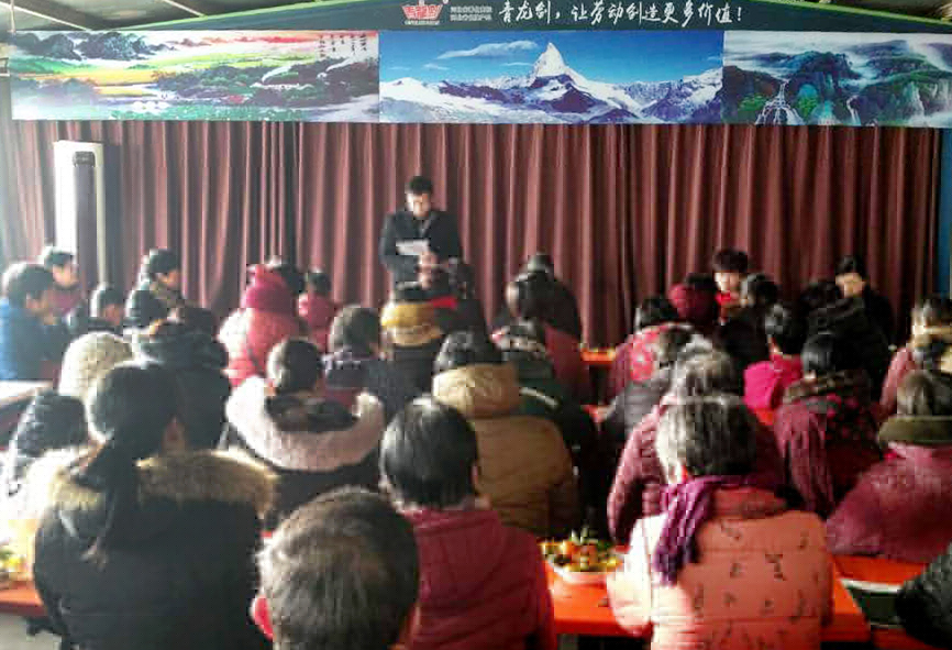 2018年2月8日,青龍劍公司全體管理人員召開了年終總結會議。讓管理人員起到傳、幫、帶的標桿作用,管理人員一一作出匯總報告。