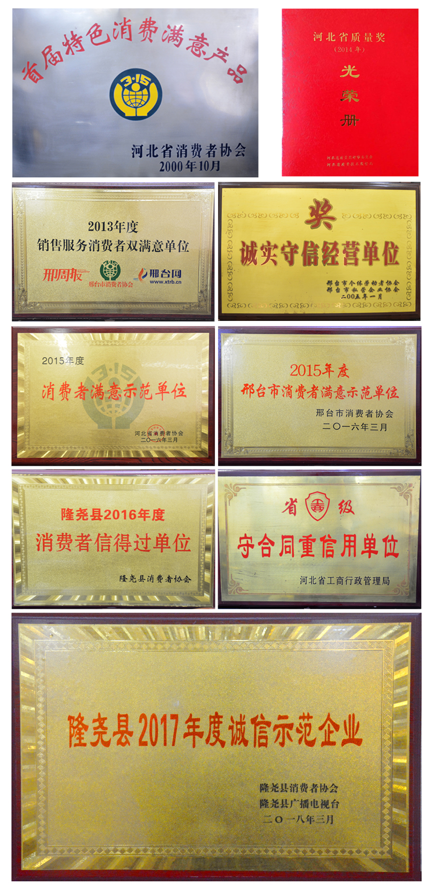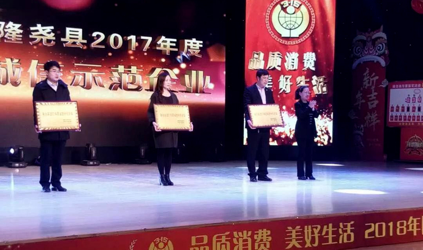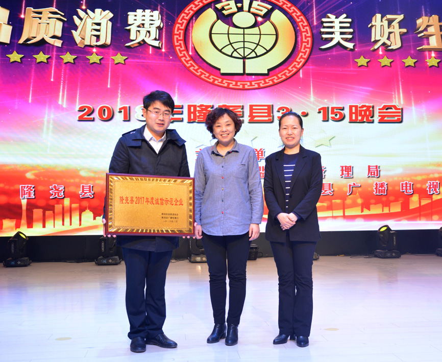 會(huì)上,發(fā)布了消費(fèi)警示,質(zhì)量抽檢通報(bào),并對(duì)群眾投訴名單進(jìn)行了曝光。隨后對(duì)誠信經(jīng)營企業(yè)做出表彰。期間播放了青龍劍釘業(yè)宣傳片,并為企業(yè)頒發(fā)了“隆堯縣2017年度誠信示范企業(yè)”獎(jiǎng)牌。