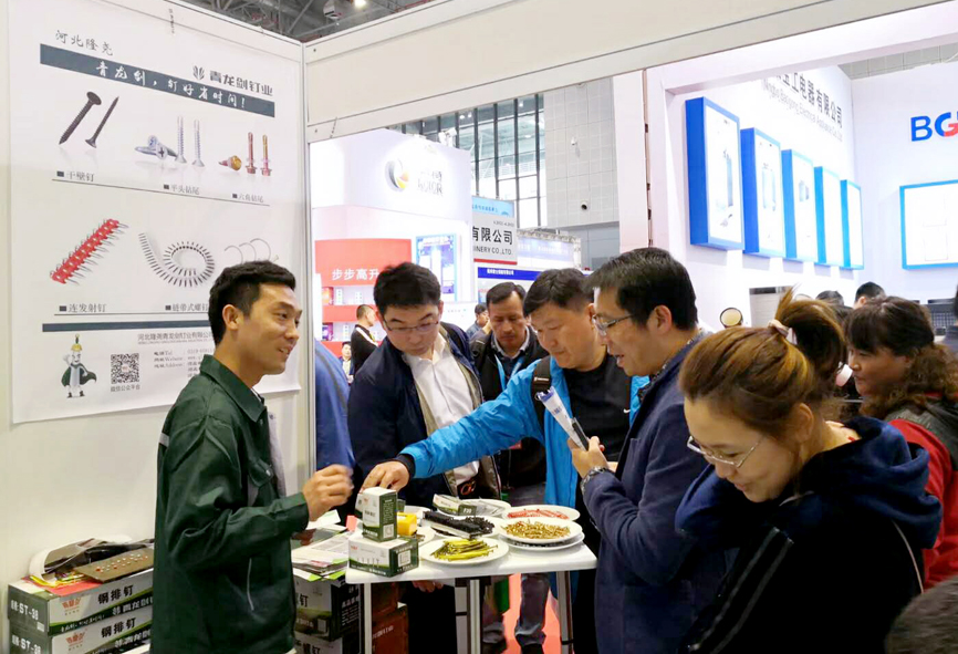 展會上展示了青龍劍釘業的全系列產品,裝修用釘、建筑用釘、螺絲釘。并推出新產品,鏈帶干壁釘、高強度連發射釘、吊頂一體射釘。在青龍劍工作人員的講解并演示下,吸引了眾多參展者的駐足,對青龍劍產品產生了極大興趣,并進行了詳細咨詢。